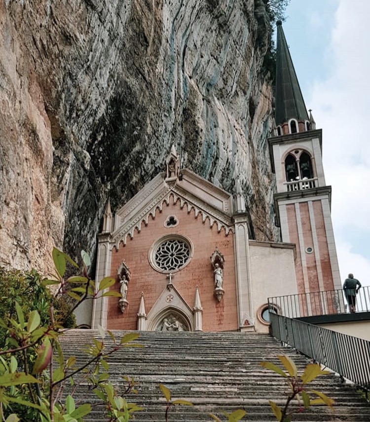 Eu já me informei que existe uma antiga trilha de peregrinagem com 2 horas de caminhada saindo da localidade de Brentino in Val d’Adige. Dali percorre-se uma longa subida com 1540 degraus talhados na rocha até chegar ao santuário.
