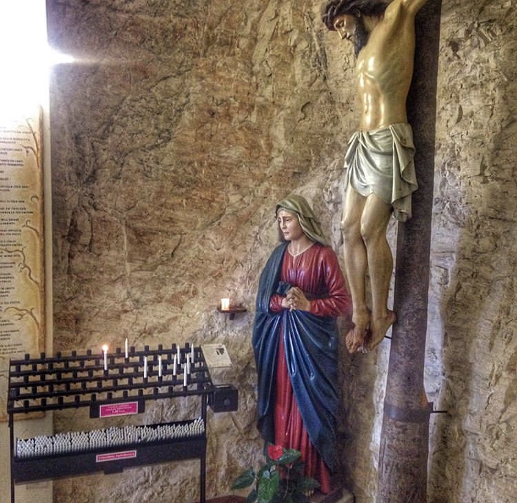 A outra alternativa é chegar de carro até Spiazzi e estacionar em frente à entrada do Santuário. Dali você tem duas opções: pegar o mini ônibus ou ir a pé. Se for ao é, dizem que a descida é muito tranquila e você terá oportunidade de ver as esculturas em bronze com as estações da Via Crucis até chegar ao santuário.