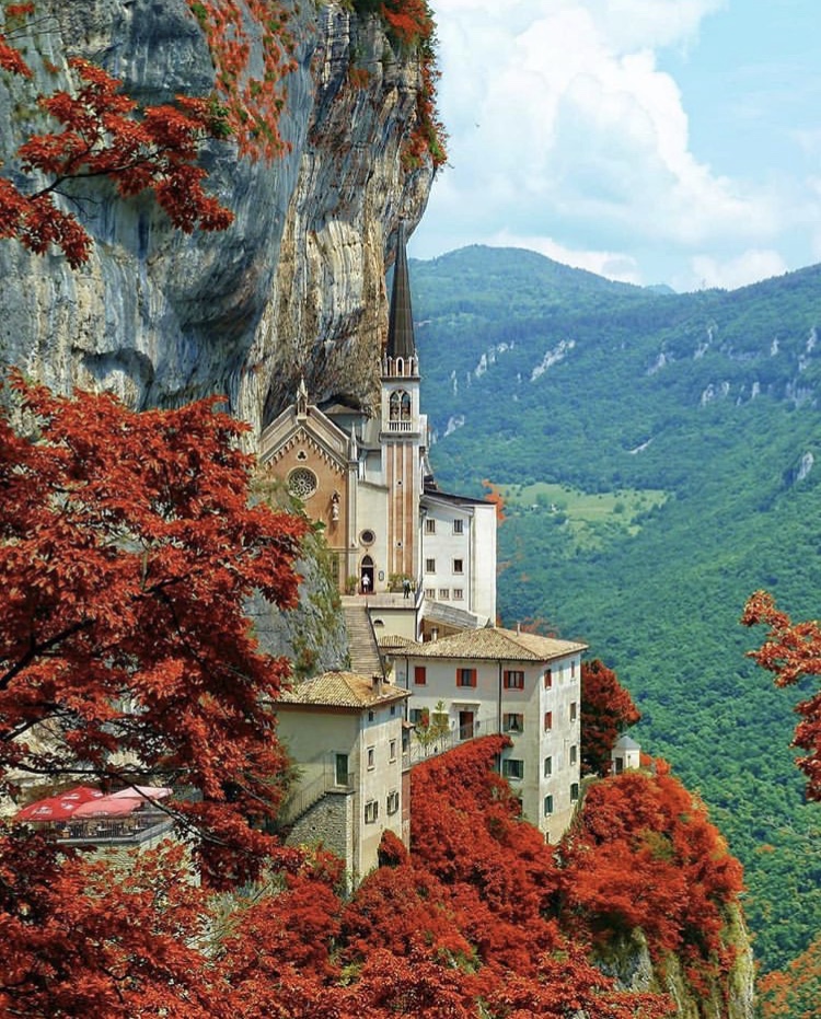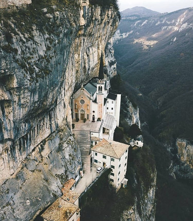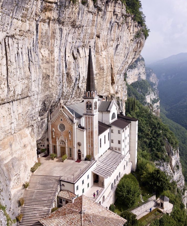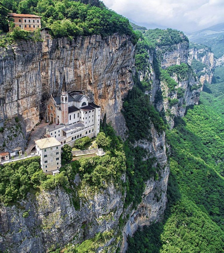 As metas religiosas italianas por si só são carregadas de emoção por tratarem-se de antiquíssimos lugares de fé e peregrinagem, mas o Santuário Madonna della Corona é ainda mais impressionante. Uma igreja inscrustada em uma rocha, suspensa entre o céu e terra, a 770 metros de altura, escondida pelo Monte Baldo.