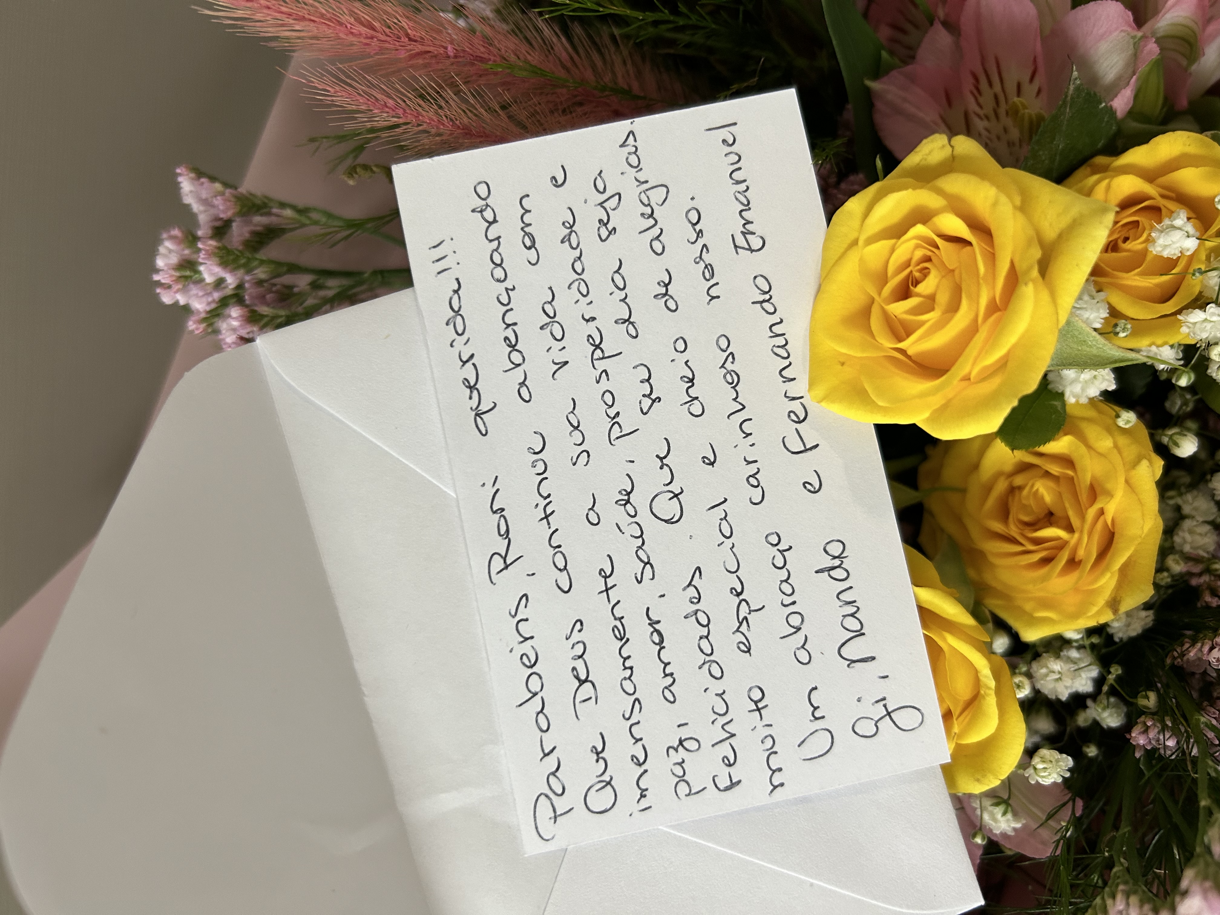 O grande dia chegou, 16 de junho de 2025. Parabéns pra mim! Já amanheci recebendo belas flores da Floricultura Regador e Arte Floral, ambas aqui de Blumenau. 🌷♥️🌷